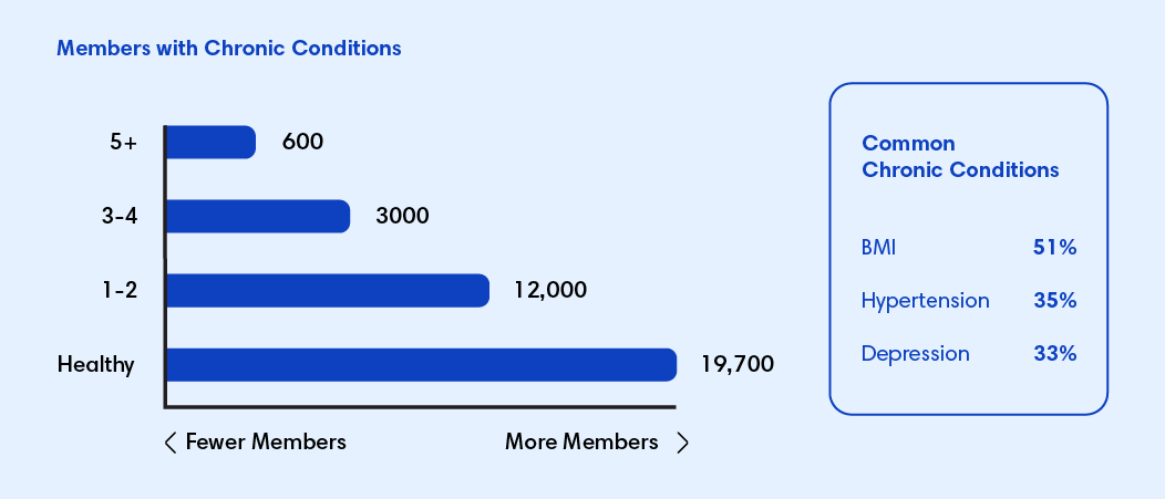 With nearly half of their member population experiencing one or more chronic conditions, it is important that clinical resources are deployed wisely. And the data made it clear that chronic conditions often do not exist in isolation—as conditions stacked, so did utilization, complexity, and cost. If a member facing comorbid conditions were having trouble navigating fragmented care, had inconsistent treatment plans, or preventable escalations, that was surely impacting not only their health, but ability to stay productive at work.